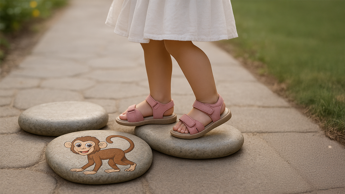 The concept I’ve also mocked up is an audio-packed experience: the child steps on a stone with an animal illustrated on one of the stones. The weight of the child triggers the sound of the animal.